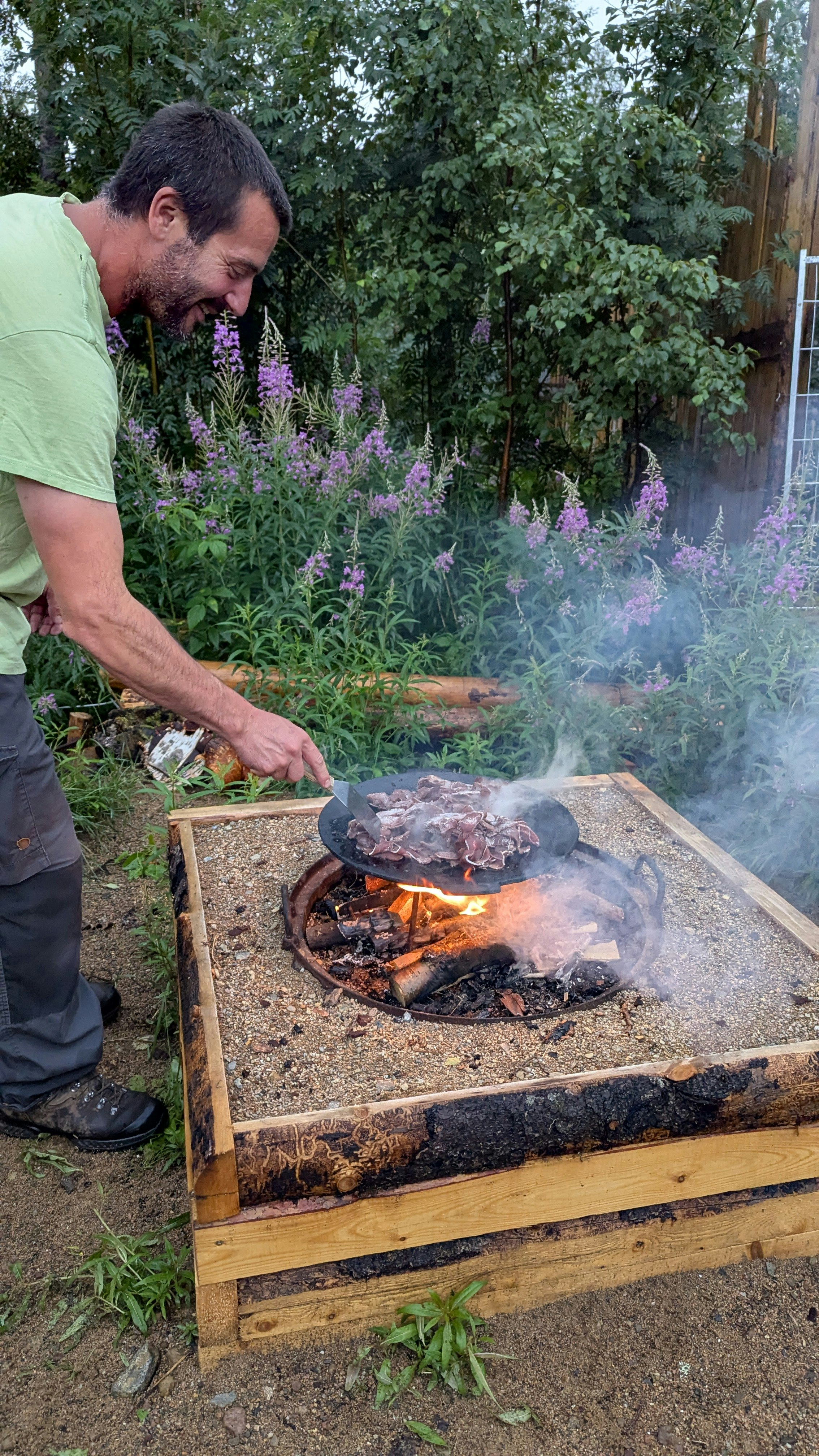 Som avslutning samlas alla runt en brasa där en måltid tillagas över öppen eld, tillsammans med fika i svensk stil. En avslappnad, lärorik och varm upplevelse för hela familjen.